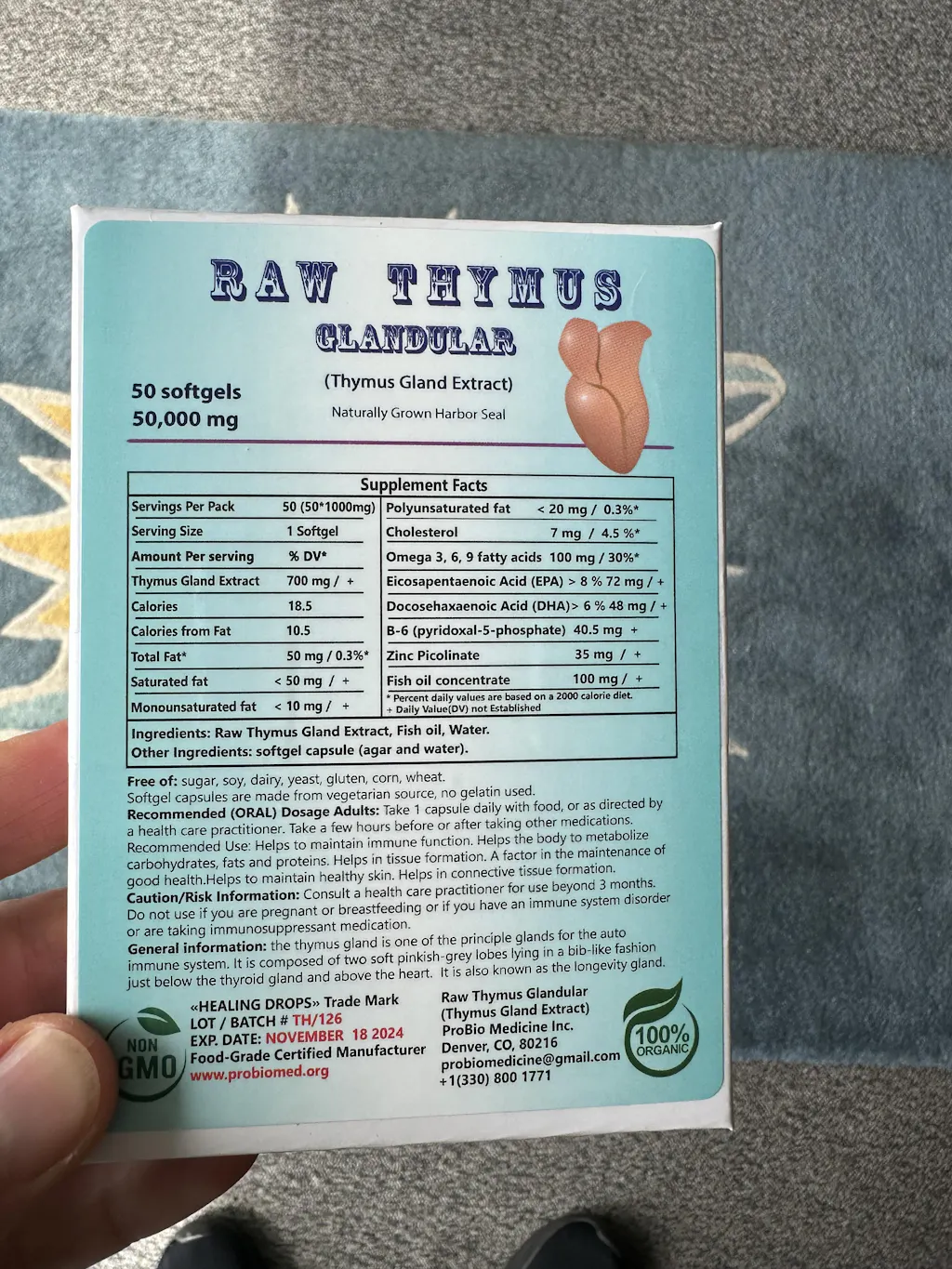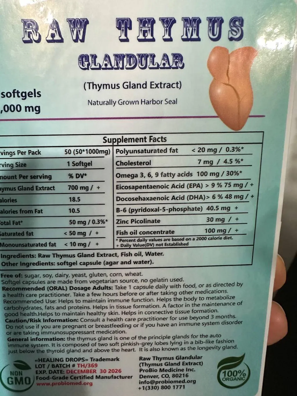 Thymus Gland Raw Tissue Softgels - Ocean Fed Harbor Seal Glandular Extract